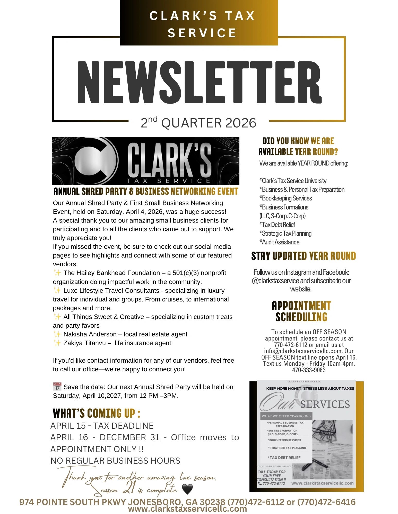2nd quarter 2026 NEWSLETTER - ISSUE #2 “tax season recap”